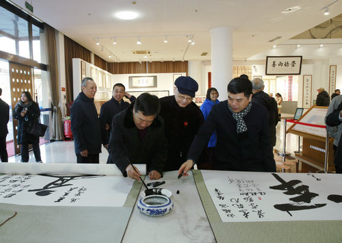 开幕式现场,全国青年魅力歌手大赛银奖获得者张馨月;国家一级演员、军旅歌唱演员祝学军;诗词作曲、古筝弹唱,青年歌手王炫凝;国家一级演员郑卫银等演艺界知名人士到场祝贺,分别以演唱歌曲、豫剧等多种形式的文艺节目把书法展活动推向了高潮,赢得了大家的阵阵掌声。