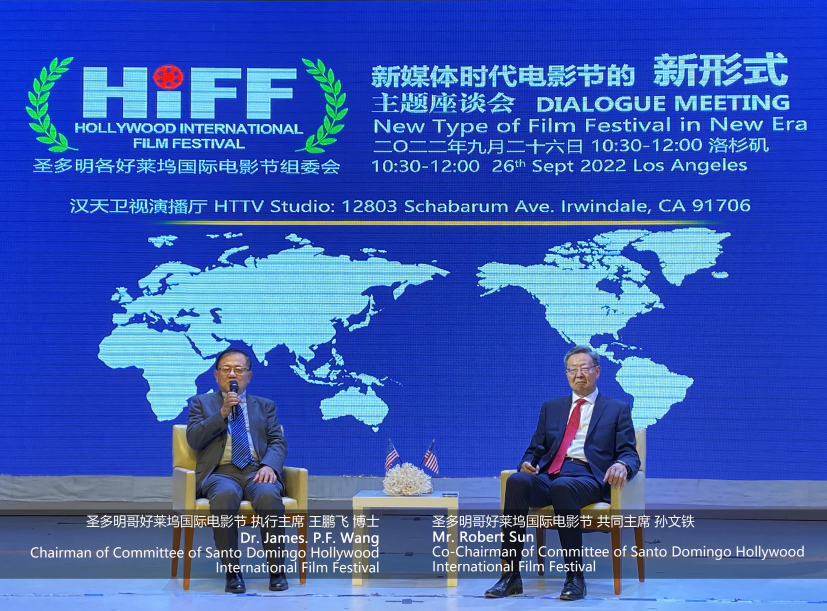 洛杉矶当地时间 9 月 26 日,圣多明哥好莱坞国际电影节对话会在汉天卫视演播厅举行。本次对话会有两个议题,一是宣布首届圣多明哥好莱坞国际电影节将于2023 年2月下旬在多米尼加共和国首都圣多明哥举办;二是探讨新媒体时代电影节的新形式。