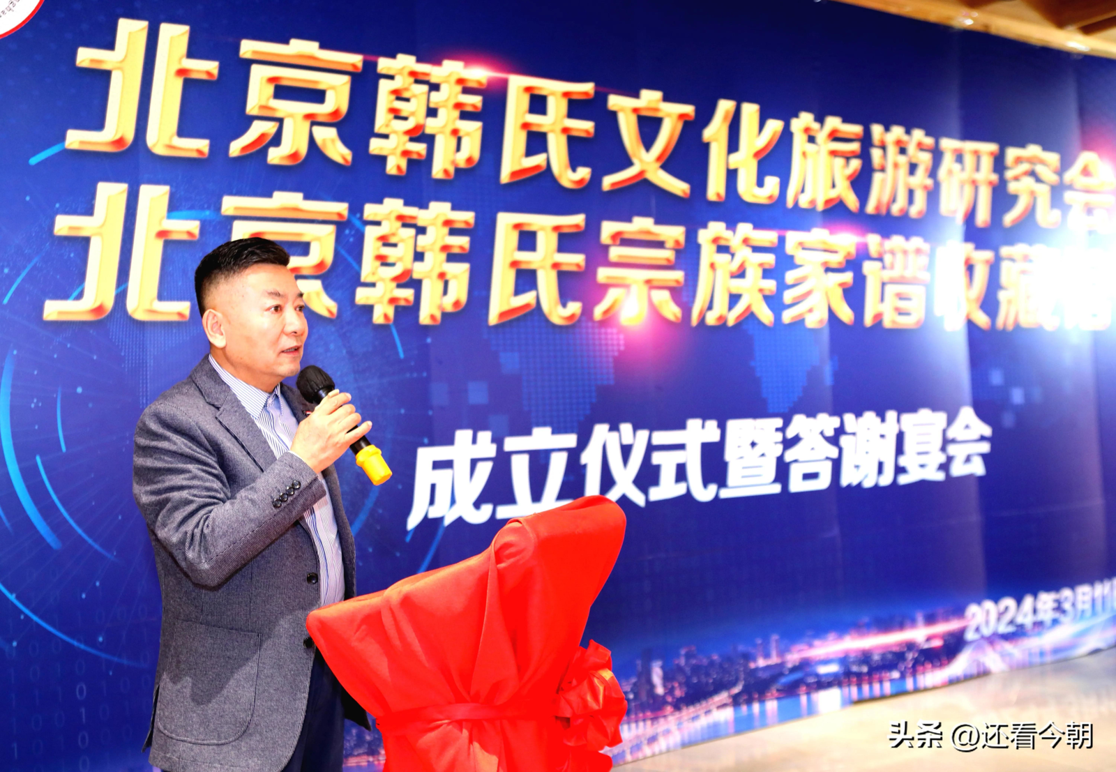 在这样一个龙行龘龘、龙马精神龙、龙飞凤舞的大好日子里,我们举行韩氏文化旅游研究会暨韩氏宗族家谱收藏馆揭牌仪式,感到非常高兴,非常荣幸、非常激动。