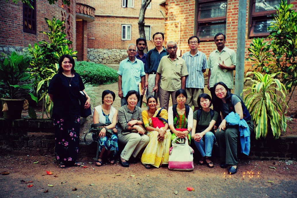 帕拉梅斯瓦兰 (MP Parameswaran,后排左一),温铁军(后排左三),黄平(后排右二),刘健芝(前排左二),蒋子丹(前排左三),戴锦华(前排右一),薛翠(前排右三)。2001年,印度喀拉拉邦农村调研。