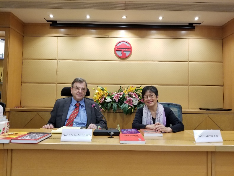 迈克尔·赫德森教授(Michael Hudson,左)与刘健芝(右)。2019年,香港岭南大学。