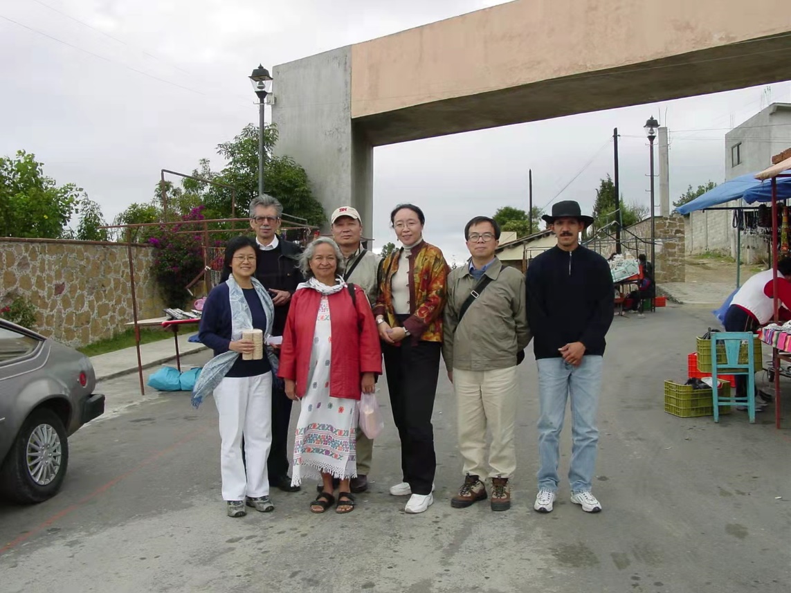 路易斯·卢佩斯Luis Lopezllera(墨西哥)(后排左一)、温铁军(后排左二)、戴锦华(前排左三)、黄平(前排右二)、刘健芝(前排左一)。2002年,墨西哥城乡调研。