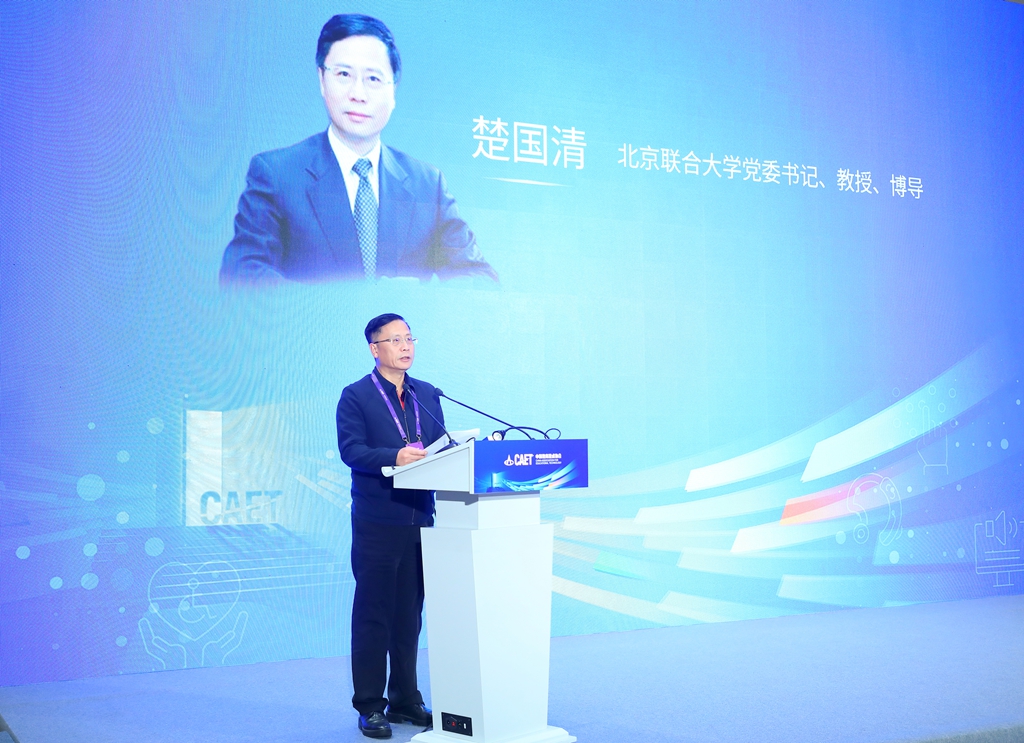 以“创新赋能智健未来”为主题的“新时代教育康复的融合与创新发展研讨会”11月4日在京召开,由中国教育技术协会教育康复专业委员会和北京联合大学共同主办。第十四届全国人大代表、中国残联副主席王永澄,中国教育技术协会副会长黄先开,北京联合大学党委书记楚国清,工业和信息化部原信息中心副主任李新社,中国老年保健协会副会长兼秘书长温中一,中国康复辅助器具协会秘书长毛勇等出席会议。来自教育、康复、医疗届的专家学者、我校师生代表共计180余人参会。