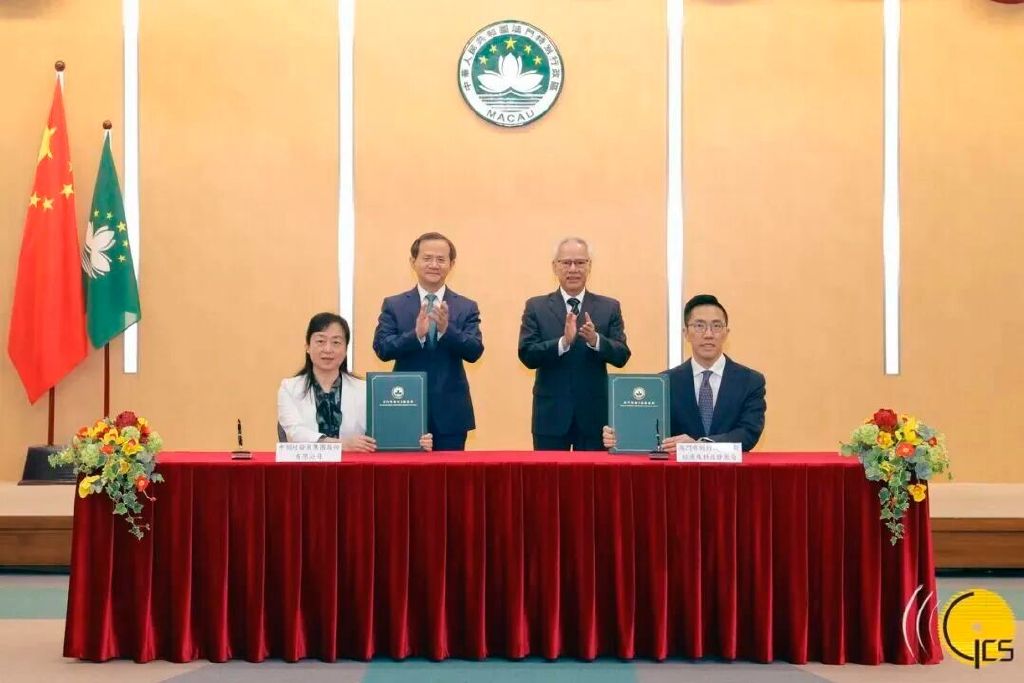 在岑浩辉、殷勇的共同见证下,双方代表签署了《澳门特别行政区政府经济及科技发展局与中关村发展集团合作备忘录》。