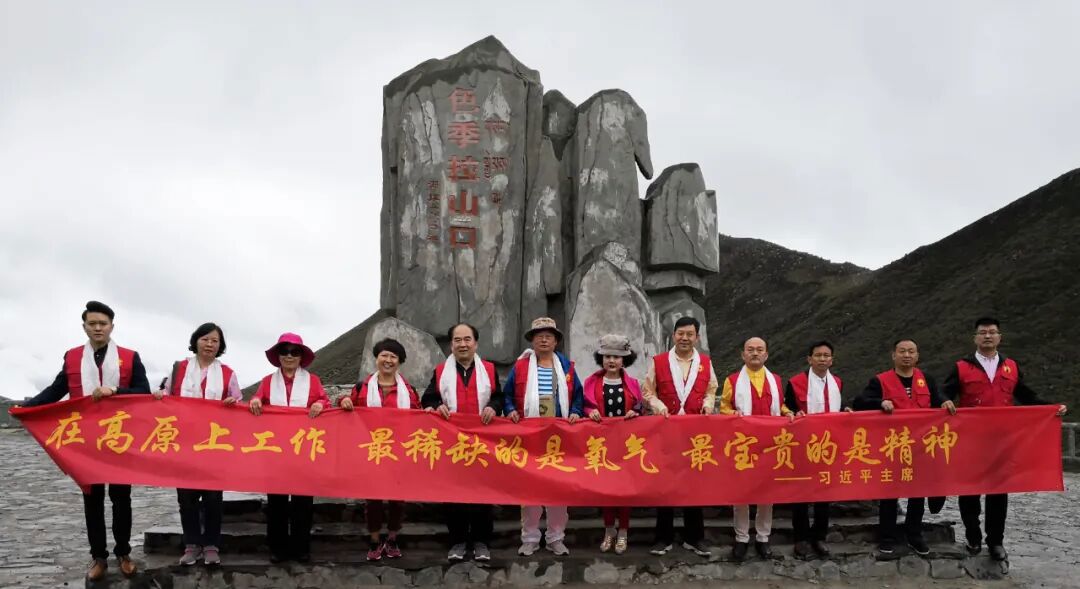2018年7月1日上午,中国第八届“红色工程·感恩行动”全国行走进西藏(感恩共产党 感恩毛主席 感恩老红军 感恩卫国老兵)、纪念中国共产党成立97周年、纪念中国人民解放军建军91周年、纪念毛主席诞辰125周年、纪念周总理诞辰120周年、“牢记党的宗旨,弘扬老西藏精神”论坛、纪念老红军谭冠三中将诞辰110周年活动,在拉萨市西藏职业技术学院大学生活动中心举行。这是活动前,与会领导和嘉宾在海拔4720米的色季拉山口合影。右七为姜文华院长。