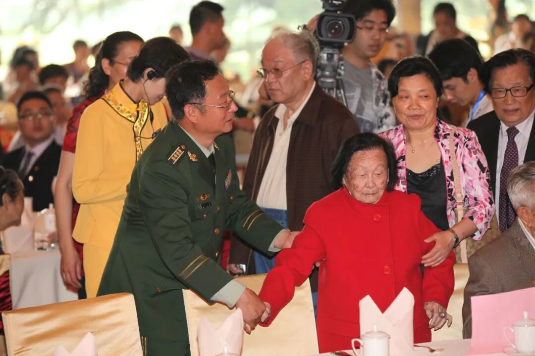 上图左起:共和国第一位女省委书记、中共中央统战部原副部长(正部级)万绍芬,老红军、原成都军区政委万海峰上将,老一辈无产阶级革命家谢觉哉夫人、老红军王定国,老红军、原空军副司令员王定烈,全国工商联原副主席、红色文化研究院院长王治国。