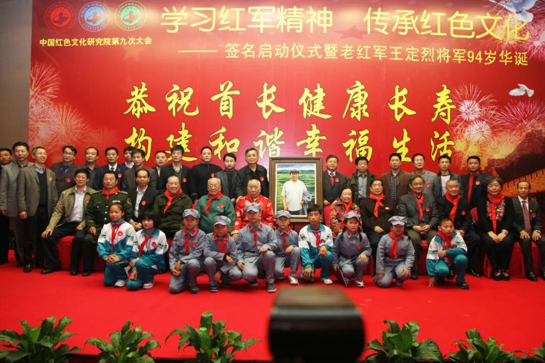 2011年11月15日,学习红军精神 传承红色文化——签名启动仪式暨老红军王定烈将军94岁华诞活动在京举行。二排坐者左六为老红军王定烈将军,左七为老红军王定国。左二为姜文华院长。