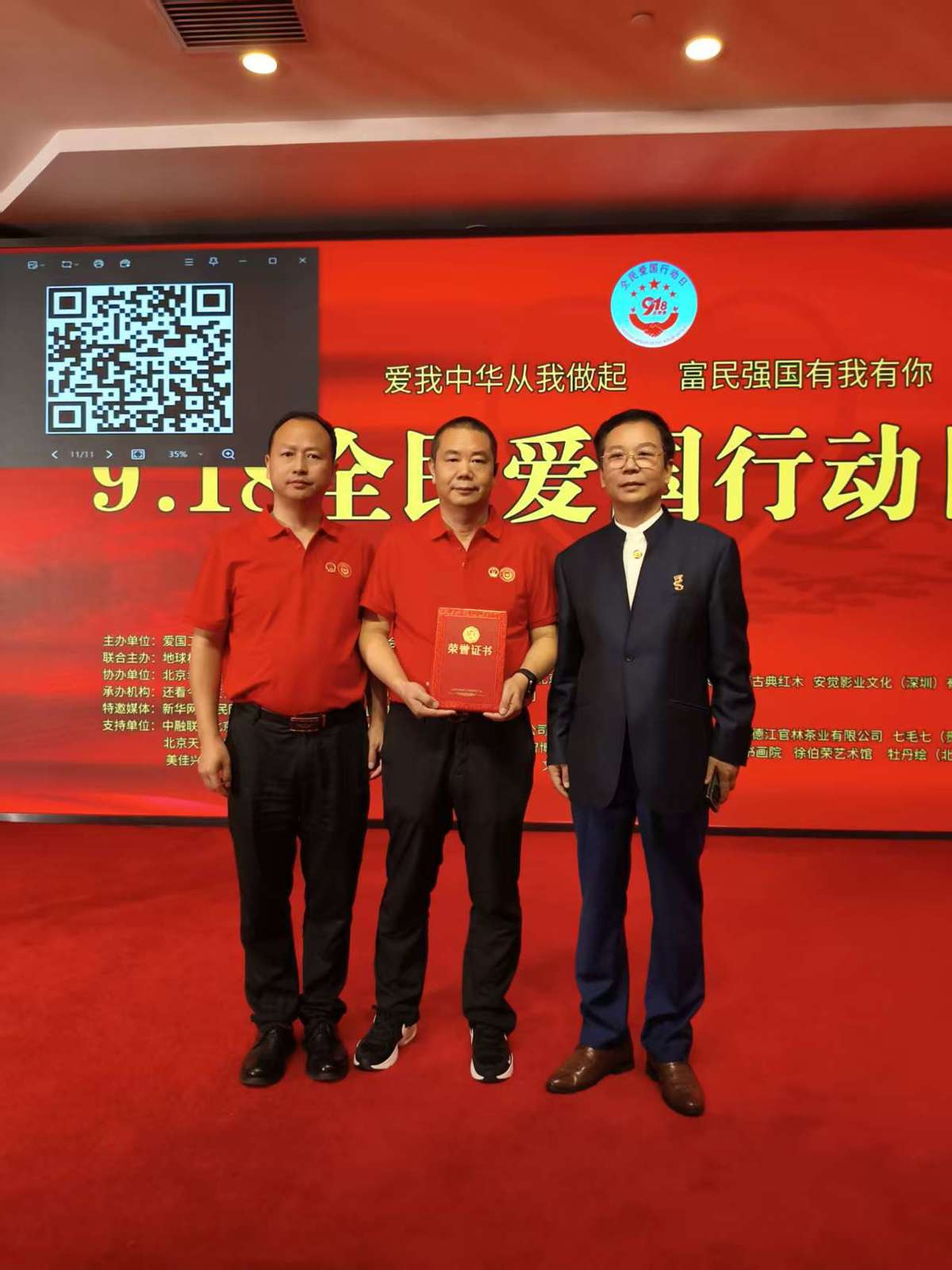 宜兴永芳古典红木家具董事长范俊华代替“勇陶斋”接受荣誉证书