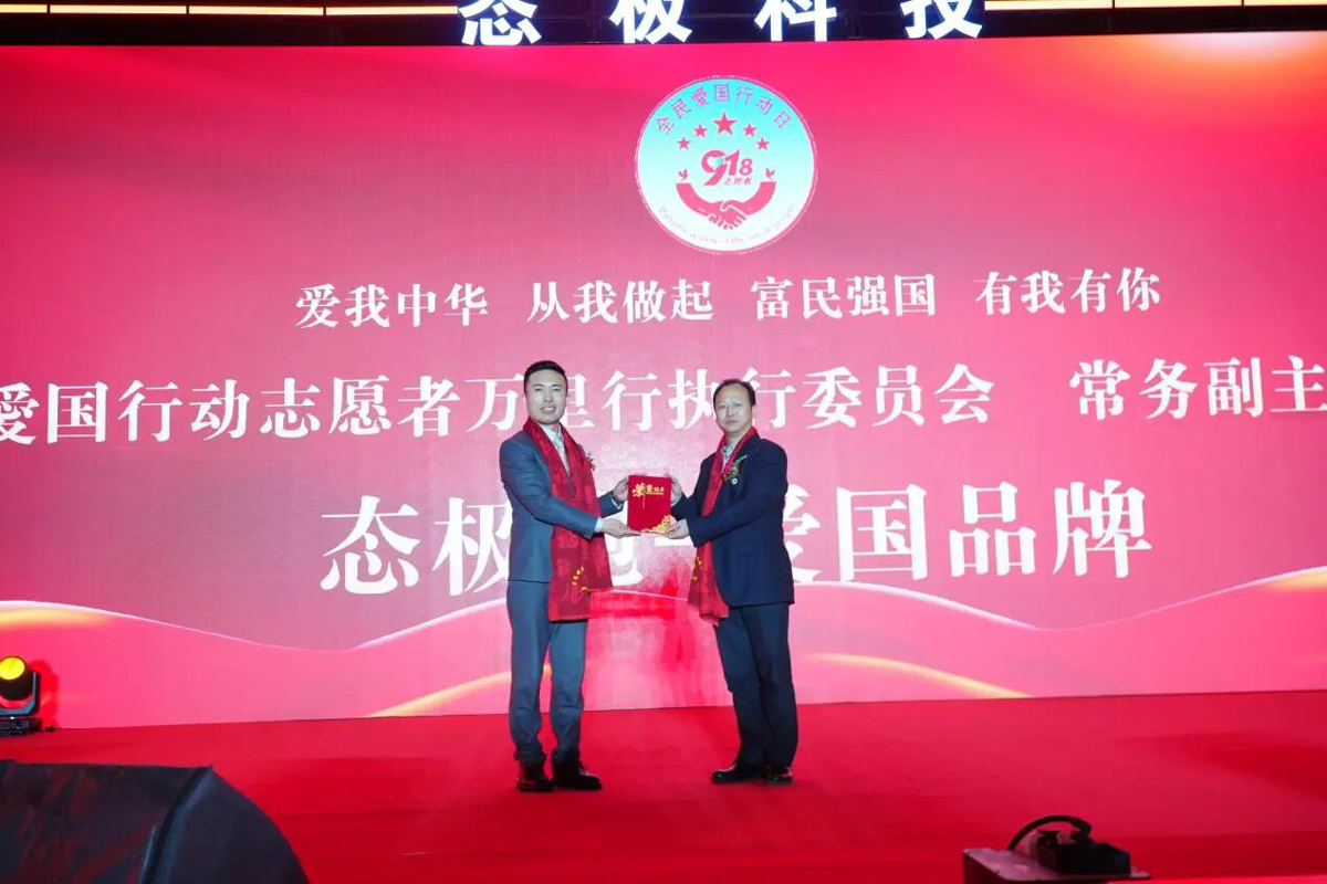 执委会常务副主席李辉给态极科技颁发爱国品牌荣誉称号