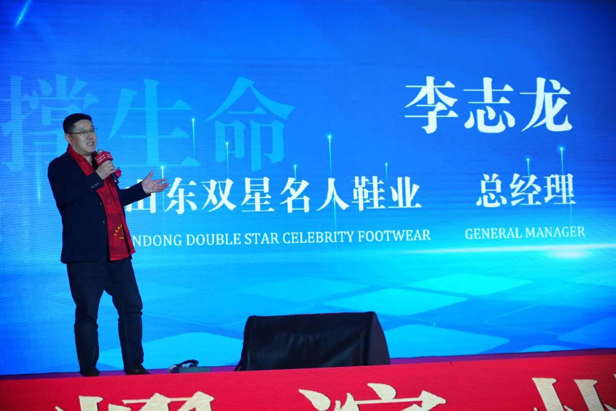 合作伙伴的鼎力支持是品牌发展的坚实基石。态极跑科技鞋重要合作企业——青岛双星名人集团总经理李志龙先生随后登台。他就态极跑科技鞋产品的研发历程、市场表现及双方深厚的合作成果发表了讲话,并对未来的协同创新与市场共赢表达了坚定支持,彰显了产业链强强联合的强大力量。