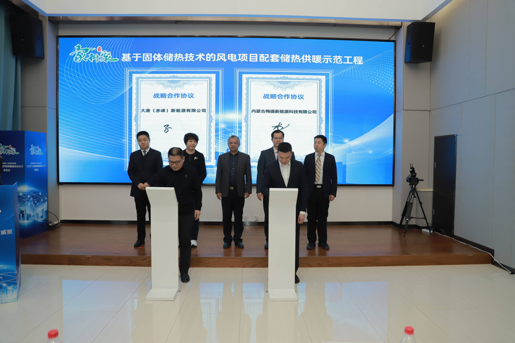 当日,内蒙古梅捷新能源科技有限公司进行了“新型固体储热技术的转化与应用”的科技成果发布,在相关低碳应用成果发布后,梅捷新能源科技有限公司与赤峰市林西县政府、大唐(赤峰)新能源有限公司现场签署战略合作协议。梅捷公司的企业家与科学家合作团队里的郭炳庆(清华大学博士后、中国电力科学研究院首席专家)和姚宏(北京交通大学博士生导师、北京市绿色产业发展促进会会长)两位核心专家,分别就“负荷柔性化是可再生能源消纳的关键所在”、“双碳背景下储能产业发展现状与趋势”进行了成果推介。