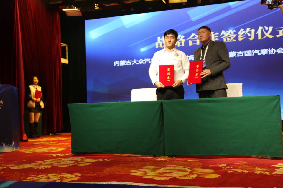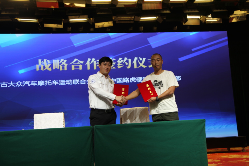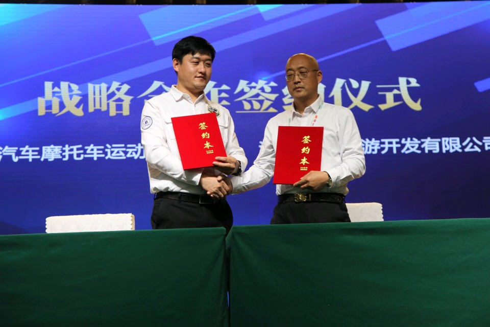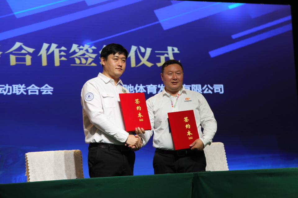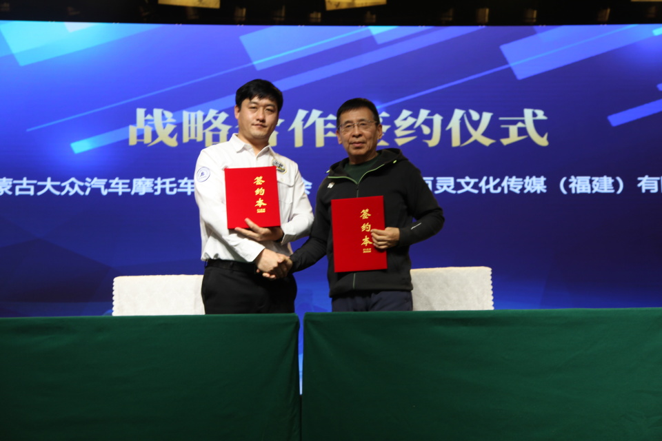 推介会上,二连浩特口岸文化旅游投资集团有限公司、中国陆虎硬派越野俱乐部、云南省下关沱茶厂、分站赛代表湖南省锦弛体育发展有限公司、河北阜荣旅游开发有限公司、赞助商四川水井坊股份有限公司、海南极风高科技股份有限公司等合作单位进行了合作签约。