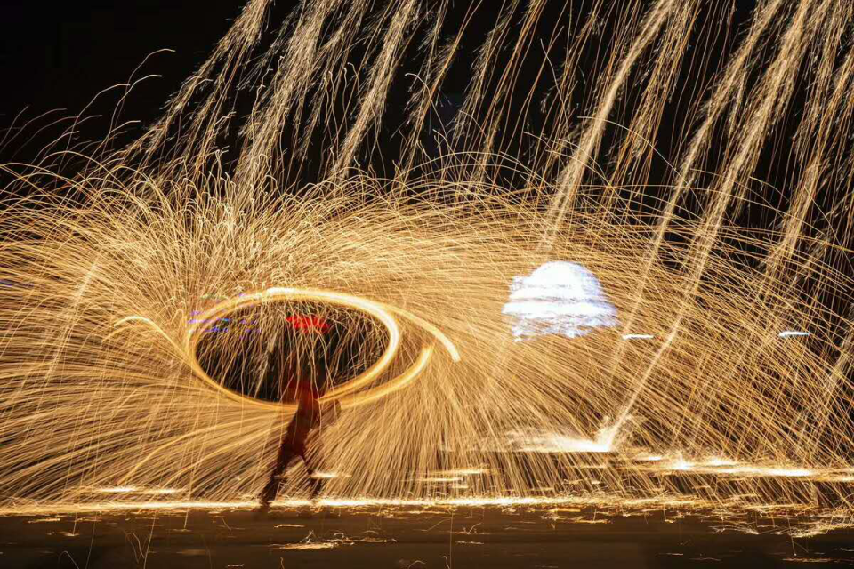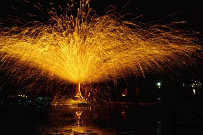 打铁花风火轮:观赏独特的打铁花表演,感受金属与火焰的碰撞之美。