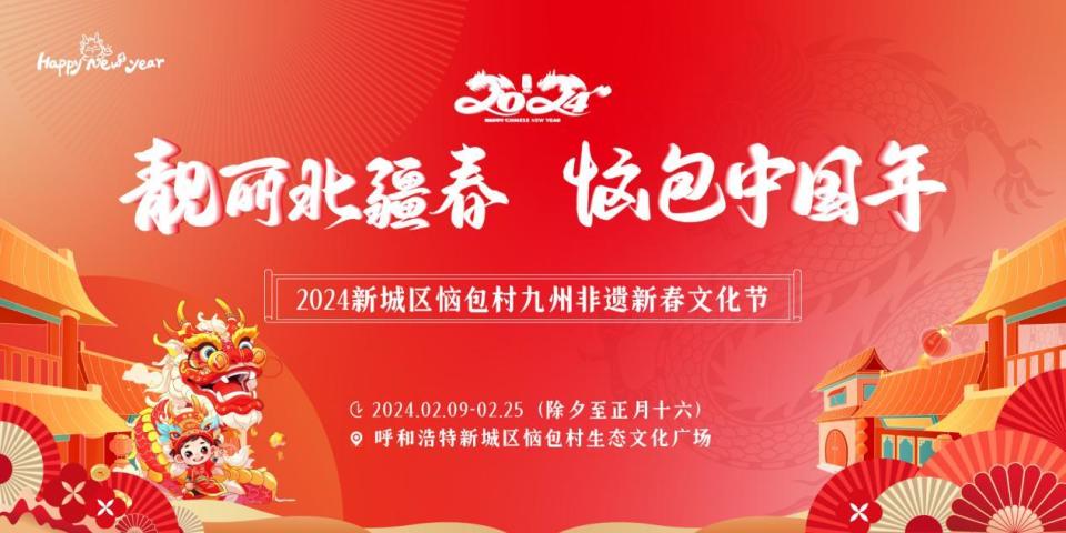 2月7日,记者从新城区保合少镇恼包村村委会获悉,由新城区保合少镇恼包村村委会主办,内蒙古魔方文化发展有限公司承办的“恼包九州非遗新春文化节”将于2024年大年三十至正月十六 2024年2月9日至2月25日在呼和浩特新城区脑包村生态文化广场举行。