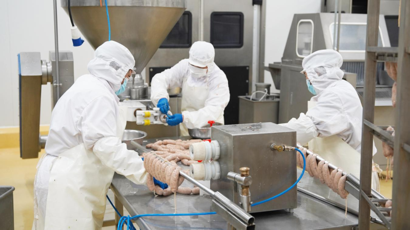 产业链下游,推动加工与销售环节“提质扩能”。一方面,内蒙古正大鸿业食品有限公司(自治区级龙头企业)投资687.51万元实施“自动化生猪屠宰设备升级项目”,围绕屠宰加工、产品安全、冷库升级三大维度实现全流程智能化,年屠宰加工猪肉达6.2万吨,屠宰工业产值从8.2亿元跃升至12.9亿元,同比增长37%,并获评“内蒙古自治区数字化转型标杆企业”“先进级智能工厂”;另一方面,内蒙古卜蜂食品有限公司投资95.88万元建设“生猪产品预制菜预冷库、包装设备升级项目”,改造预冷库1座、新增自动包装设备1套,2024年生产预制菜661.7吨,实现销售收入782.9万元,让“盛乐猪肉”从“生鲜品”升级为“即食消费品”,延伸了价值链条。