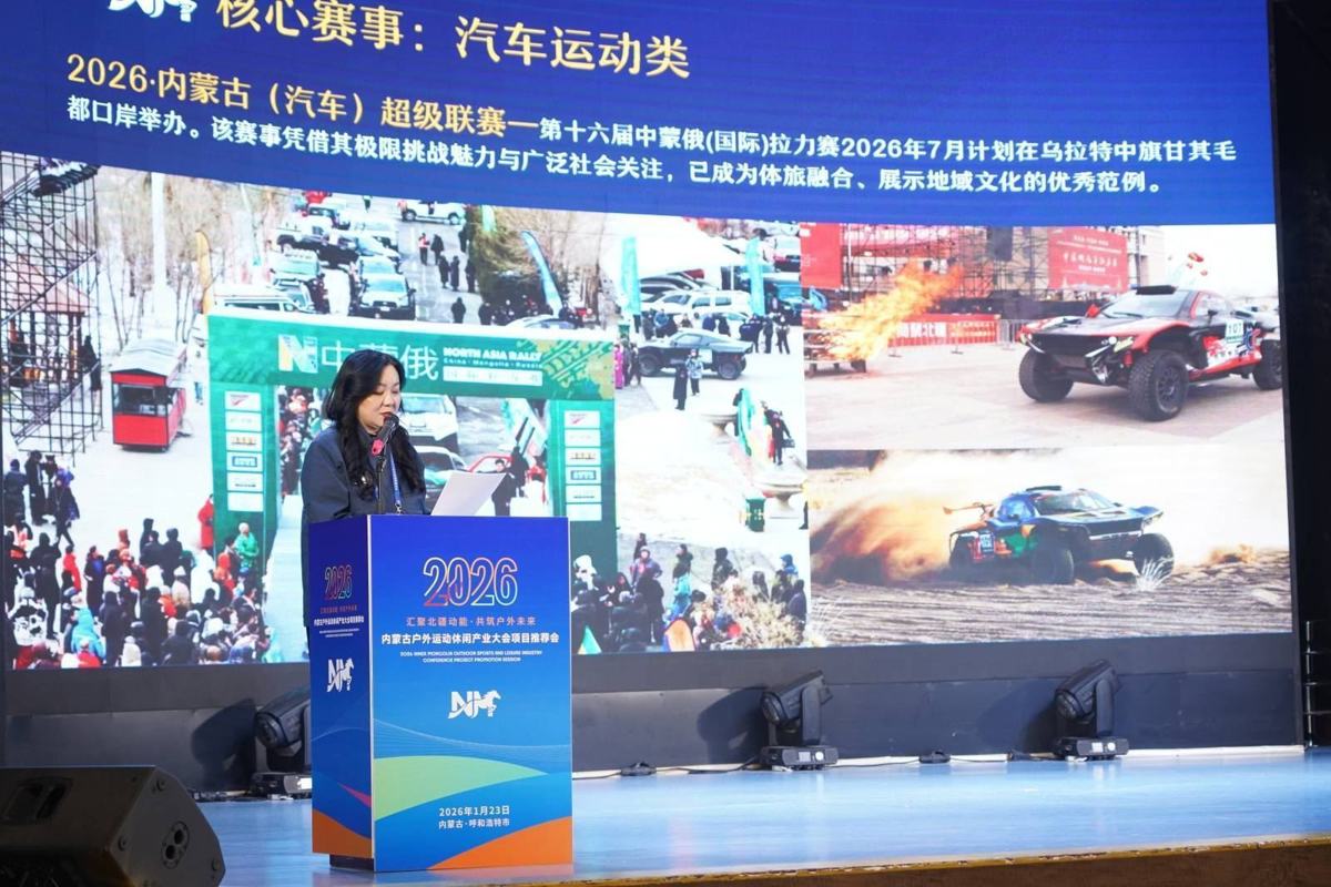 1月23日,以“汇聚北疆动能,共筑户外未来”为主题的2026年内蒙古户外运动休闲产业大会项目推荐会在呼和浩特市隆重召开。本次大会由内蒙古体育发展基金会支持,内蒙古大众汽车摩托车运动联合会、内蒙古拳击协会、内蒙古大众马术协会、内蒙古龙狮运动协会联合主办,大会邀请了自治区体育局领导、盟市文体部门领导、品牌合作伙伴、行业协会代表、媒体嘉宾等共100余人出席,集中展示内蒙古在户外运动休闲领域的资源优势与发展潜力,推动体育产业高质量发展。