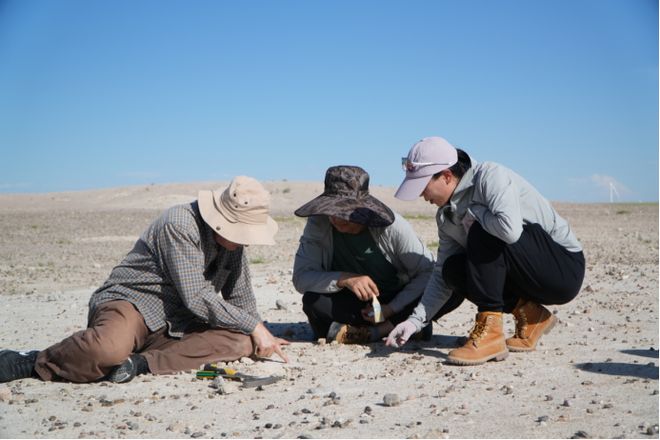 持续强化科学研究,2025年,内蒙古自然博物馆依托与中国科学院古脊椎动物与古人类研究所签订的战略合作协议,组织双方科研人员共同赴阿拉善巴彦乌拉山及周边区域,开展了针对蛋化石的系统性野外调查。本次联合科考目标明确、执行有序,团队不仅成功发现多处蛋化石碎片,还准确厘定了其产出层位与地质背景,圆满完成了阶段性科研任务。此次合作进一步夯实了双方协作基础,也为深化区域古生物学研究提供了重要的实证依据。